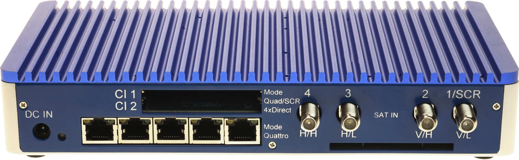 Connection to a quad LNB or 4 multiswitch outputs for the reception of one satellite. The available number of tuners is 8x DVB-S/S2/S2X, which can be used independently of each other. A total of 4 cables are required from the LNB or multi-switch. DiSEqC control for reception of multiple satellites is not possible in this mode.